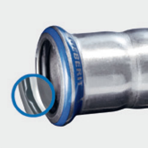 Presarea curată este cheia pentru etanșeitatea permanentă a sistemului și reducerea susceptibilității la coroziune. Geberit trasează cerințe ridicate asupra calității lipirii atât pentru fitinguri, cât și pentru țevi. Un tratament termic special asigură o structură omogenă a materialului - atât pentru fitinguri, cât și pentru țevi - și prin urmare o operație optimă de presare.